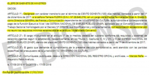 De acuerdo a la Decisión Administrativa 1015/2018 publicada hoy en el Boletín Oficial, el Jefe de Gabinete designó a la señora Tamara Florín como Directora General de Prensa y Comunicación. Como ya es costumbre de Cambiemos, se trata de un nombramiento con carácter de excepción dado que la productora de Lanata no cumple con los requisitos mínimos establecidos por la ley para el cargo.