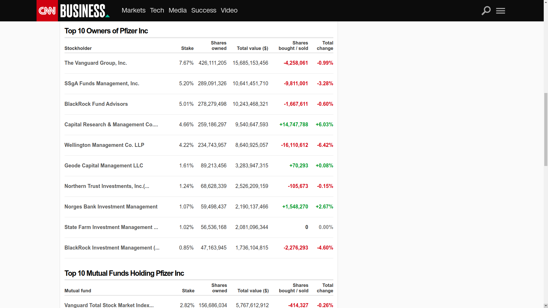 ¿Quiénes son los principales accionistas de Pfizer que finalmente terminarán recogiendo estas inmensas ganancias? Los megafondos financieros Vanguard Group, State Street y BlackRock.