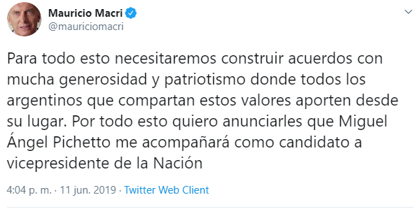 Por eso el propio Macri expresó por Twitter: