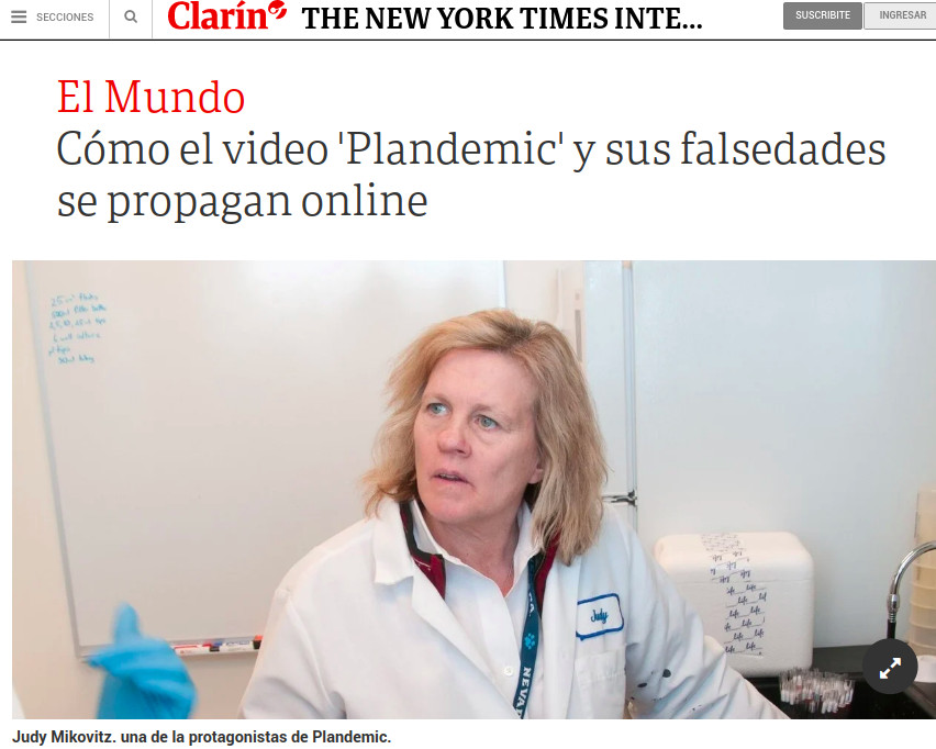 Los grandes medios de cada país también optaron por publicar notas denostando el testimonio de Mikovits. Para el diario argentino La Nación: «Mientras asistimos al descongelamiento progresivo de las medidas que confinaron a un tercio de la población en sus casas, la semana pasada, un video repleto de desinformación y teorías conspirativas titulado «Plandemia» fue publicado en redes sociales y retirado tres días después por infringir autorregulaciones sobre veracidad: con estética y narración de calidad documental, participación de celebridades y científicos desacreditados como la Dra. Judy Mikovitz, desafía las recomendaciones sanitarias. Redes como YouTube, Twitter y Facebook fueron puestas a prueba: debían lograr que no se multiplicara de manera, literalmente, viral». El diario argentino Clarín no podía ser menos y reproduce una nota de The New York Times titulada «Cómo el video ‘Plandemic’ y sus falsedades de propagan online».