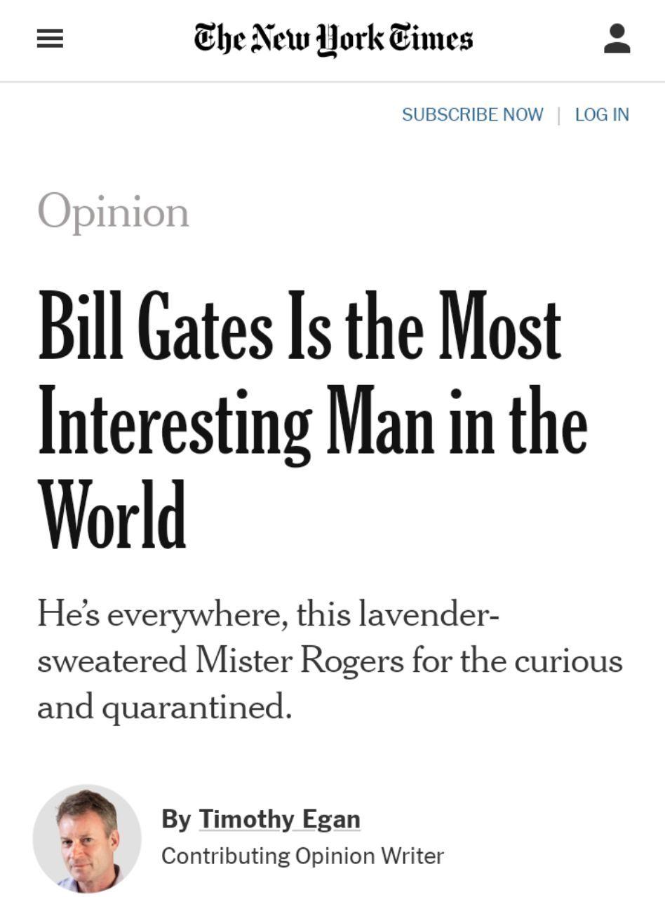 El mismo New York Times que elogia a Bill Gates tildándolo de «El hombre más interesante del mundo»: