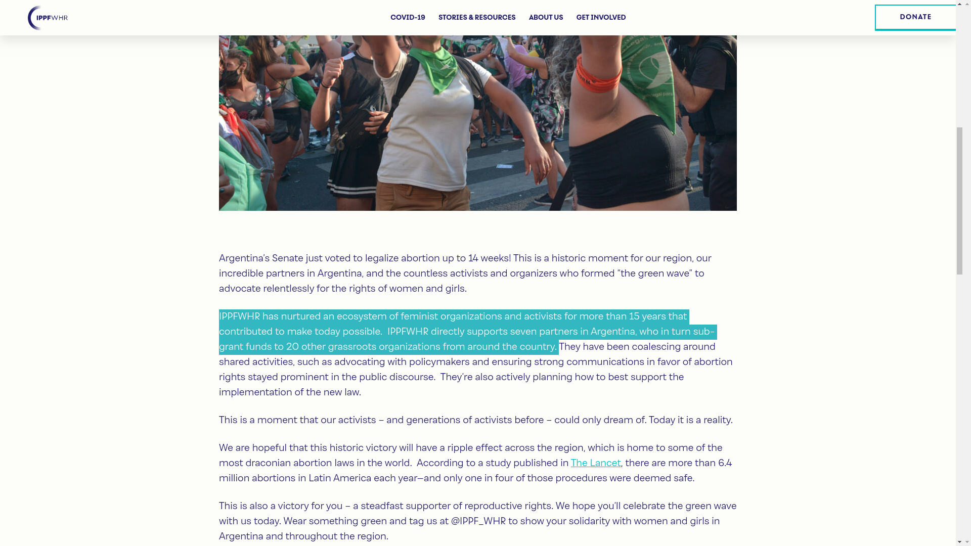 «Este es un momento con el que nuestros activistas, y generaciones de activistas anteriores, solo podían soñar. Hoy es una realidad. Tenemos la esperanza de que esta histórica victoria tenga un efecto dominó en toda la región, que alberga algunas de las leyes de aborto más draconianas del mundo (…) Esta también es una victoria para usted, un firme defensor de los derechos reproductivos. Esperamos que hoy celebre la ola verde con nosotros. Vístase con algo verde y etiquétenos en @IPPF_WHR para mostrar su solidaridad con las mujeres y niñas de Argentina y de toda la región», le dice la multinacional a su mano de obra militante.