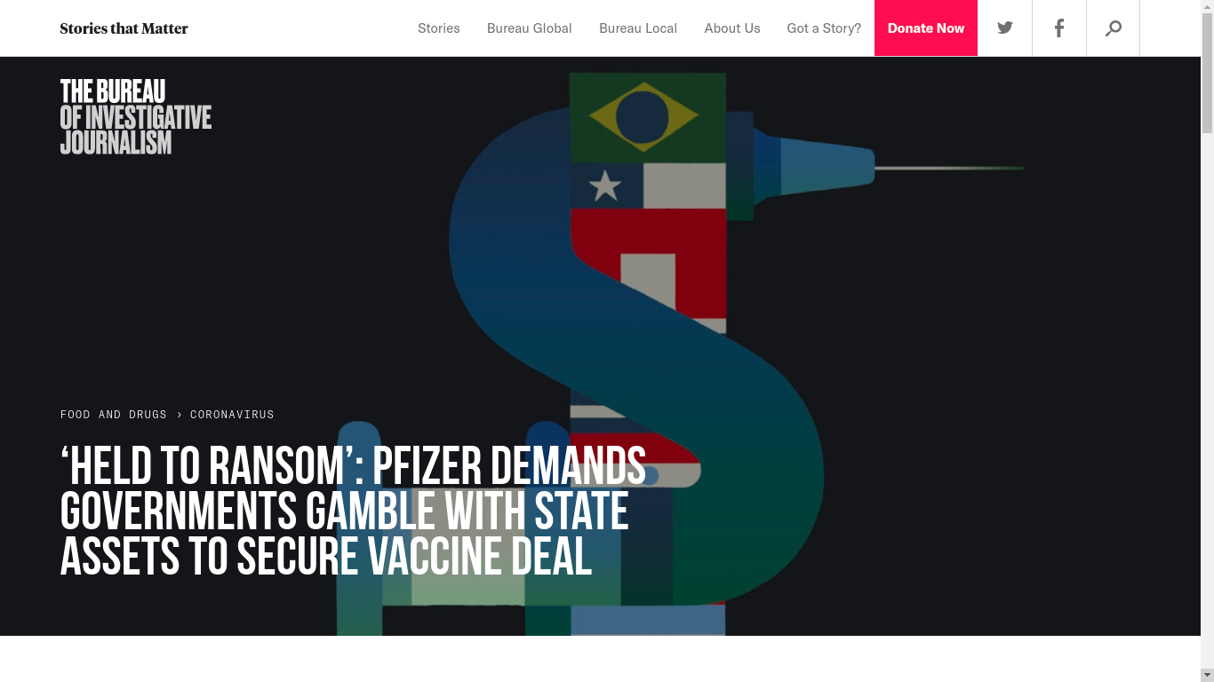El portal de noticias peruano Ojo Público dio a conocer una investigación revelando los abusivos pedidos de la multinacional farmacéutica estadounidense Pfizer a países sudamericanos, los que fueron descriptos como «intimidación de alto nivel», con requisitos de inmunidad que obligaban a los Estados nacionales a responder incluso con «activos soberanos» ante potenciales demandas judiciales a mediano y largo plazo por «reacciones adversas»: «exigieron una indemnidad adicional contra cualquier reclamo civil que los ciudadanos pudieran presentar si experimentaban efectos adversos, después de ser vacunados».