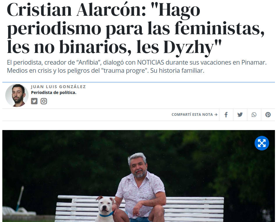 Revista Anfibia «fue creada en 2012 por la Universidad Nacional de San Martín», una universidad pública, y «propone una alianza entre la academia y el periodismo con la intención de generar pensamiento y nuevas lecturas de lo contemporáneo», realizando análisis mayoritariamente de tipo sociológico sobre distintas problemáticas argentinas, desde una mirada progresista.