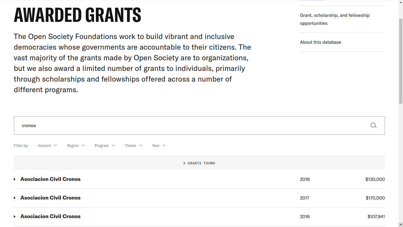 A los U$S 80.000 dólares recibidos solo en 2020 por Cronos, deben sumarse los U$S 400.000 dólares recibidos entre los años 2016 y 2018 por la Open Society Foundations, la entidad transnacional del megaespeculador y oligarca financiero George Soros.