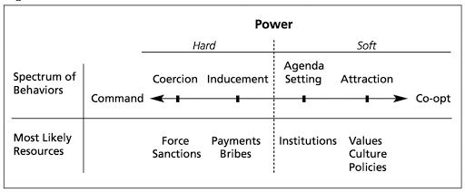 En su tesis, Nye explica la conveniencia precisamente del uso de ONG’s e instituciones internacionales de prestigio para influenciar el comportamiento cultural y político de mediano y largo plazo de los países, en lugar de recurrir excusivamente a la fuerza militar y la coerción económica más directa. Los objetivos geopolíticos de la OTAN no son solo de confrontación militar, sino también de control de gobiernos, control de recursos, y, en torno a estos últimos, son cruciales todos los elementos de demografía poblacional. Nada de esto puede realizarse sin una matriz cultural, política, institucional y académica que facilite el «soft power» y posibilite la implementación de las distintas agendas globales, con el barniz progresista de lo «políticamente correcto», por sobre las soberanías nacionales.