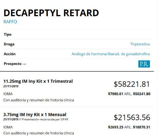 Ocurre que los precios de estos productos son altísimos. Un kit de triptorelina puede rondar los $60.000 con lo que al tener un público cautivo y además estar las obras sociales y prepagas obligadas a cubrirlos, si bien está destinado a un porcentaje minoritario de la sociedad, el negocio es enorme.