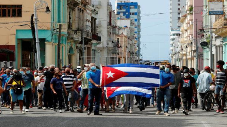 Dentro del juego geopolítico de las principales potencias globales, EEUU y Rusia volvieron a cruzarse, esta vez con respecto a la crisis económica cubana. La cancillería de Rusia afirmó que es «inaceptable que haya una injerencia extranjera en los asuntos internos de un Estado soberano y cualquier otra acción destructiva que pueda provocar la desestabilización de la situación en la isla», indicó la portavoz del Ministerio de Exteriores ruso, Maria Zajarova, quien añadió que el gobierno de Vladimir Putin «sigue de cerca la evolución de la situación en Cuba y sus alrededores». Las protestas en la isla caribeña recrudecieron a partir de este domingo, con reclamos por los apagones eléctricos masivos y la crisis económica que se incrementó en la isla tras la pandemia de Covid-19 que cercenó el turismo internacional, principal fuente ingreso de divisas del país. Por su parte, el presidente estadounidense, Joe Biden, afirmó: «Apoyamos al pueblo cubano y su clamor por la libertad y el alivio del trágico control de la pandemia y de las décadas de represión y sufrimiento económico a las que ha sido sometido por el régimen autoritario de Cuba».