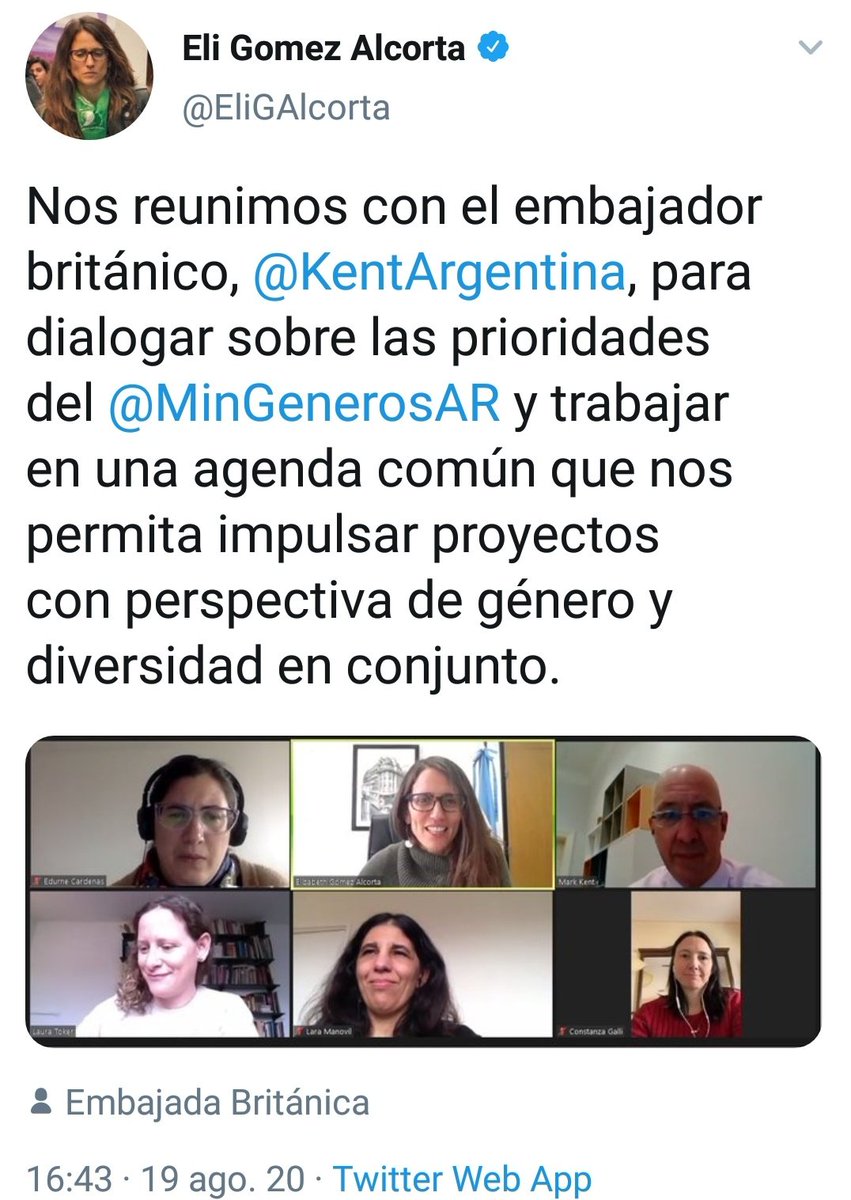 Gómez Alcorta no es la única funcionaria del Gobierno Nacional con relaciones estrechas con el ex-flogger devenido en «lonko» mapuche, también Victoria Donda le ha brindado su apoyo explícito. Curiosamente, Donda es otra funcionaria afecta a visitar la Embajada Británica.