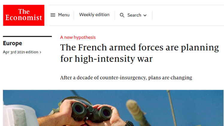 «Eso supone un cambio radical para las fuerzas francesas. Hace treinta años se dedicaban básicamente a operaciones de mantenimiento de la paz. En la última década, se centraron en la lucha contra la insurgencia y el terrorismo, bien en el extranjero (Operación Barján en el Sahel) o en territorio nacional (Operación Centinela). Sin embargo, en su visión estratégica para 2030 publicada el año pasado, el general Thierry Burkhard, jefe del ejército francés, subrayó la necesidad de prepararse para un conflicto de alta intensidad, interestatal», advierte el medio.