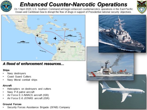Funcionarios del Pentágono afirmaron que la Marina, la Guardia Costera y la Fuerza Aérea de EEUU se encuentran ya «en guerra con los cárteles de la droga en Latinoamérica», por lo que EEUU «estaría lanzando operaciones mejoradas antinarcóticos en el mar Caribe y en la parte oriental del Océano Pacífico.