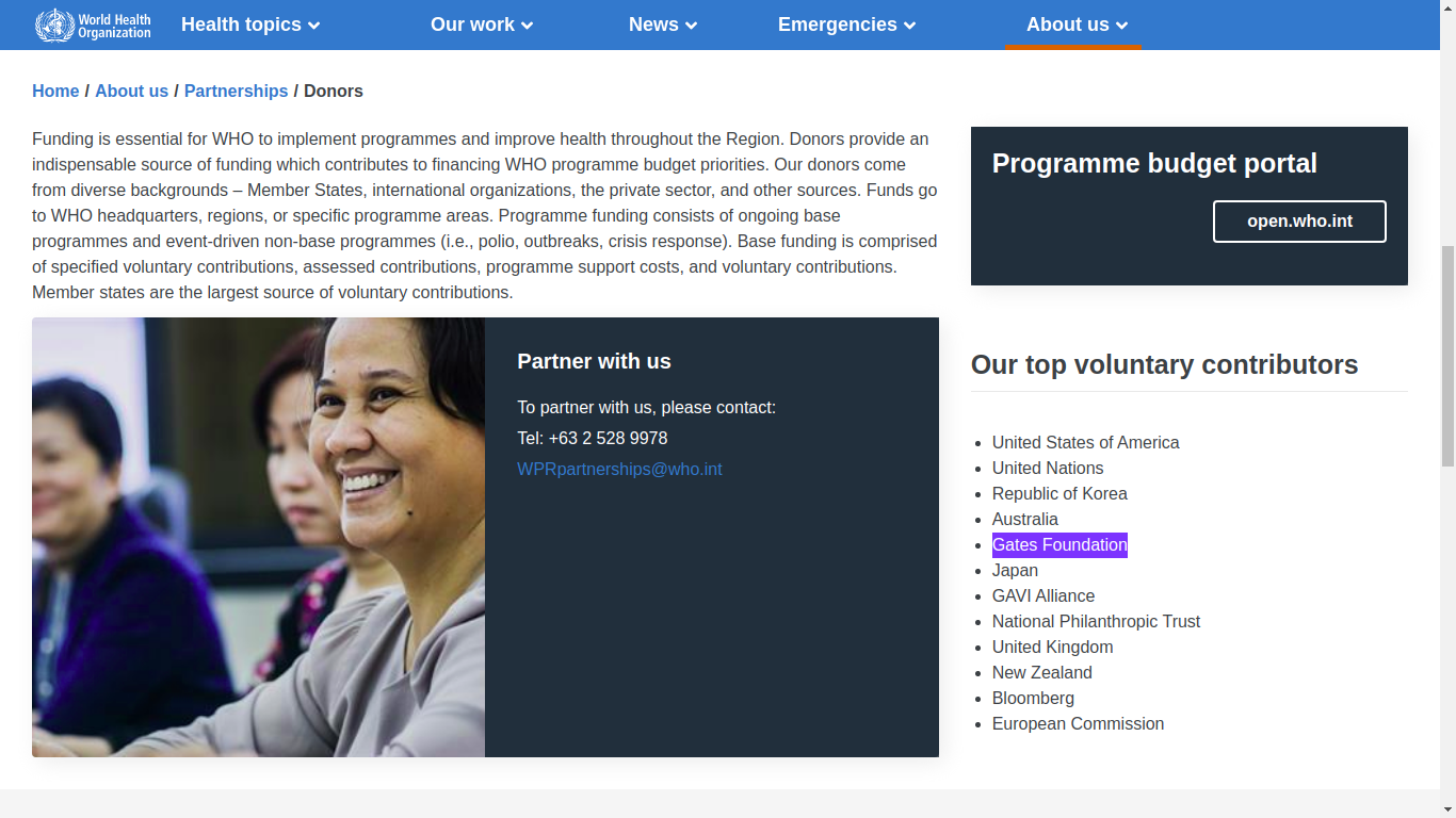 La OMS se financia principalmente con aportes de sus países miembros así como de ONG’s globales. EEUU aporta 122,6 millones de dólares anuales, le sigue China con 28,6 millones y Japón con 20,5 millones. A nivel privado, el principal financista de la OMS es la Bill and Melinda Gates Foundation, ligada a sectores de poder opuestos a Trump.