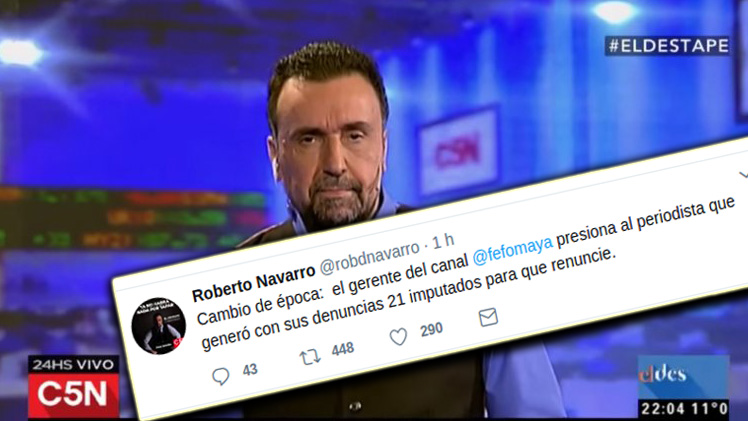 A pesar de ser el programa de mayor audiencia en el canal, el Gerente de Contenidos de C5N viene presionando a Roberto Navarro para que renuncie y dejarle su lugar a María Julia Oliván, de posturas mucho más cercanas al gobierno nacional.