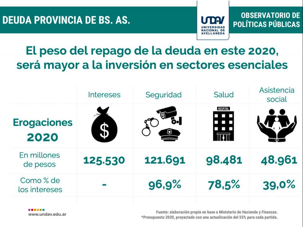 En el informe, se remarcó que “Tiene lógica la propuesta de patear el pago del capital para mayo teniendo en cuenta que entonces pueden ya estar encaminadas las negociaciones con los bonistas de la deuda nacional lo que permitiría un retorno del financiamiento para ambos niveles de gobierno”, subrayó la UNDAV.